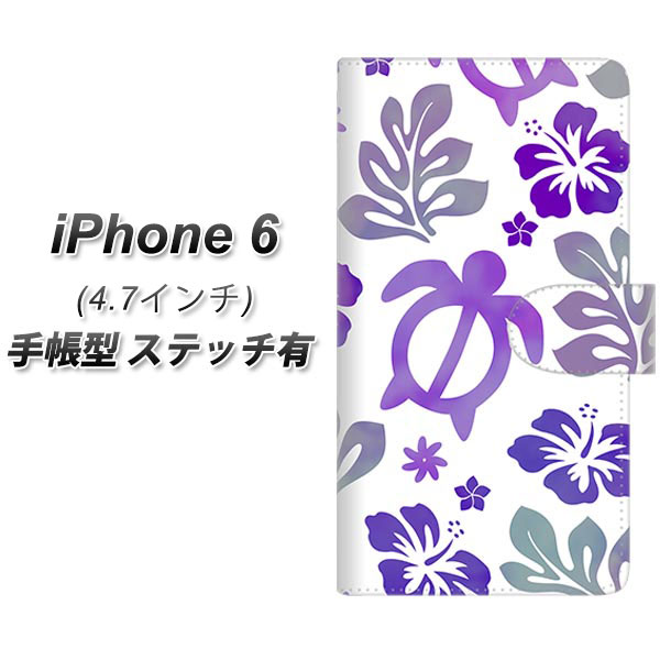iPhone6 (4.7インチ) 手帳型スマホケース【ステッチタイプ】【SC878 ハワイアンアロハホヌ パープル】(アイフォン/IPHONE6/スマホケース/手帳式)/レザー/ケース / カバー
