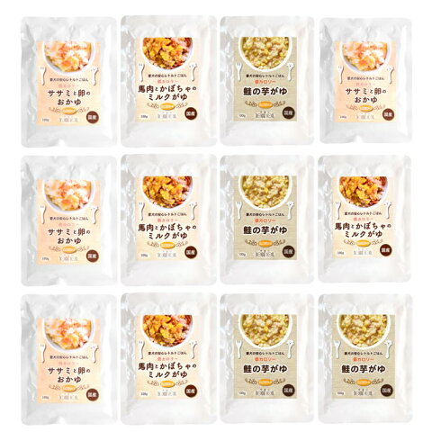 愛犬の安心レトルトごはん 低カロリー3つの味セット 100g×12袋セット (ササミと玉子のおかゆ、馬肉とかぼちゃのミルクがゆ、鮭の芋がゆ各4袋) 犬 無添加 国産 低脂肪 低カロリー 乳酸菌入り お試し おかゆセット 低カロリー